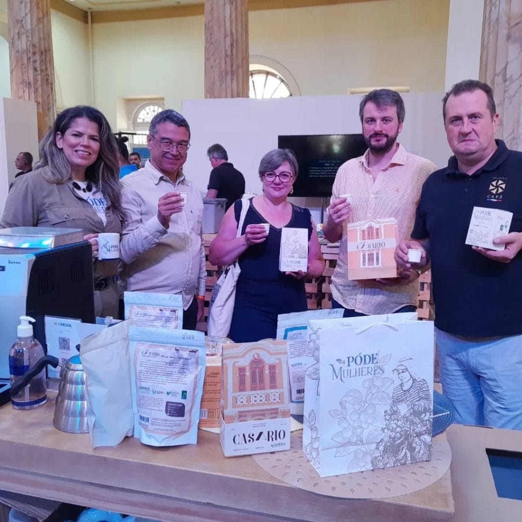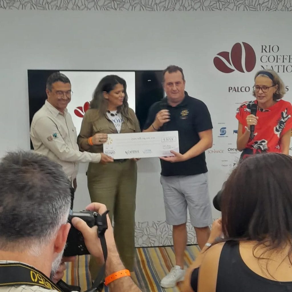 Outro marco foi o recebimento do recurso doado pela Collectif Café (União de torrefadores e importadores de cafés especiais da França). Na ocasião, o presidente da CAFESUL Renato Theodoro, recebeu um cheque no valor de 5 mil euros, que financiará parte de um projeto aprovado para a compra de kits de estufa e terreiros suspensos para o grupo de mulheres da CAFESUL. O evento contou ainda com uma palestra sobre o projeto Póde Mulheres, que também foi campeã do concurso de “Melhor Café Torrado para Espresso”.