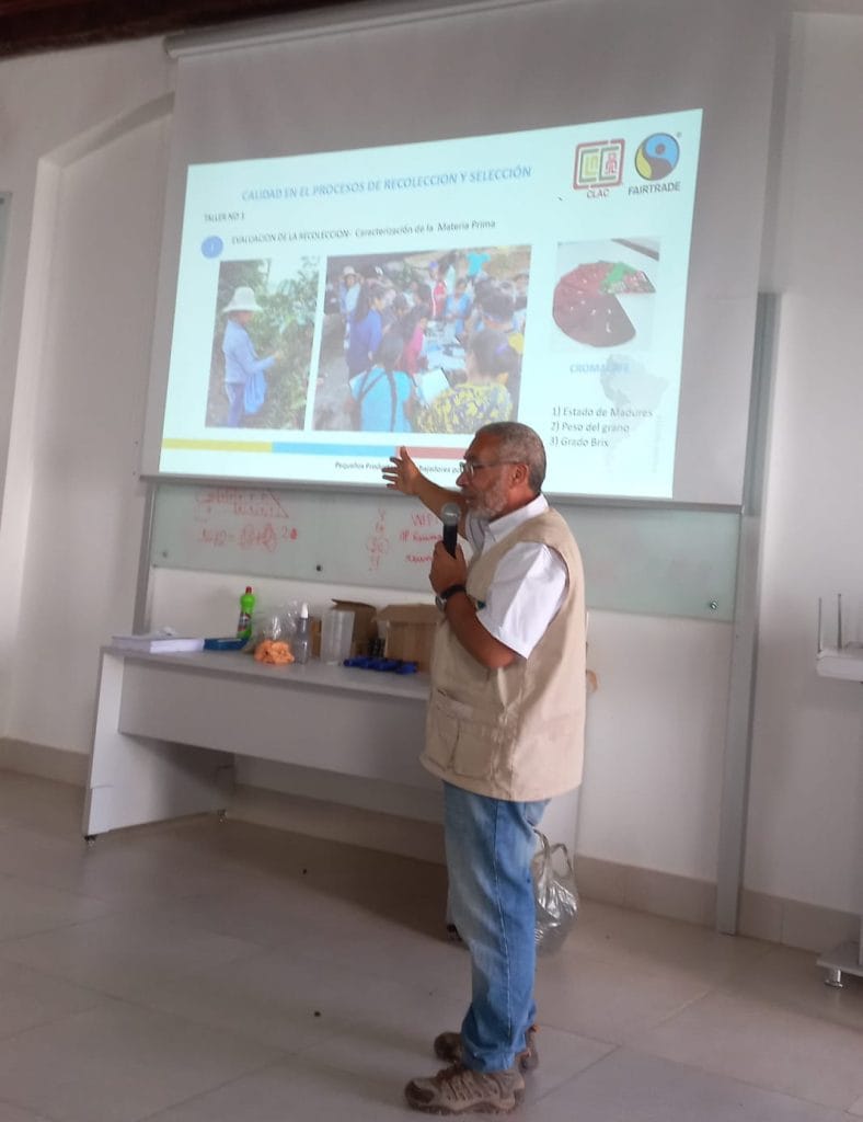 O treinamento foi ministrado pelo engenheiro agrônomo José Francisco Díaz Rocca, que é enlace Café da CLAC e especialista em produção sustentável, com o apoio das gestoras da CLAC no Brasil, Giseli Sampaio Marcilio e Paola Silva Figueiredo. Participaram engenheiros agrônomos, técnicos agrícolas e especialistas que atuam nas associações e cooperativas Fairtrade no Brasil.